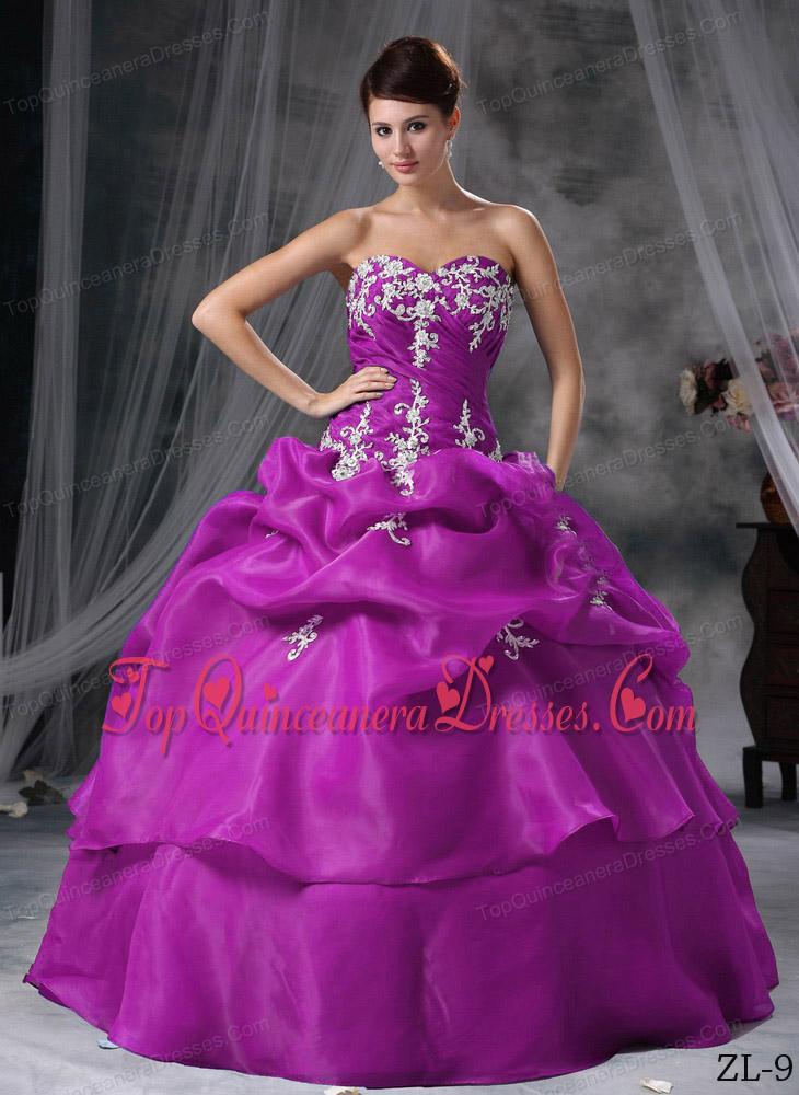 Ball Gown Sweetheart Floor-length Organza Appliques Quinceanera Dress