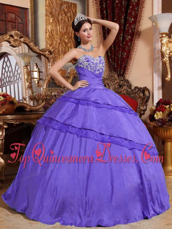 Ball Gown Sweetheart Floor-length Taffeta Appliques Perfect Quinceanera Dress