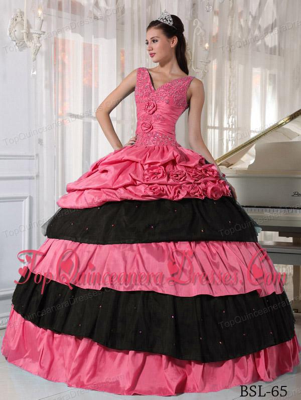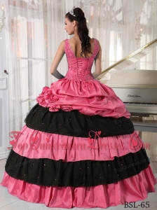 Ball Gown Watermelon and Black Taffeta Beading Quinceanera Dress