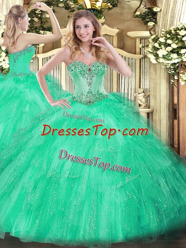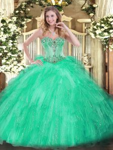 Ball Gowns 15 Quinceanera Dress Apple Green Sweetheart Tulle Sleeveless Floor Length Lace Up