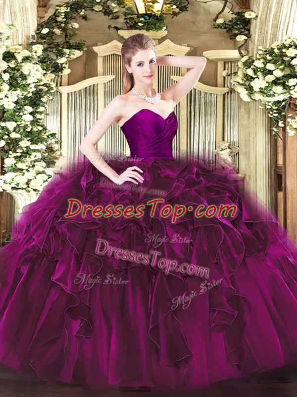 Ball Gowns 15 Quinceanera Dress Fuchsia Sweetheart Organza Sleeveless Floor Length Zipper
