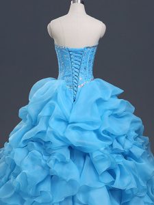 Ball Gowns 15th Birthday Dress Baby Blue Sweetheart Organza Sleeveless Floor Length Lace Up
