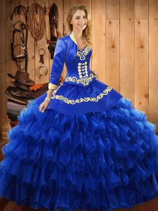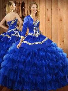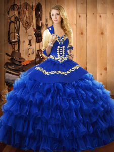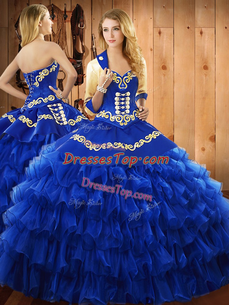 Ball Gowns 15th Birthday Dress Blue Sweetheart Satin and Organza Sleeveless Floor Length Lace Up