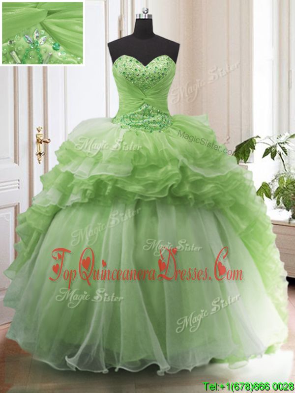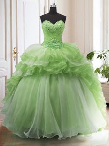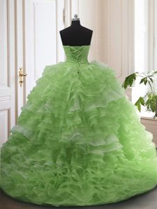 Ball Gowns Beading and Ruffled Layers 15th Birthday Dress Lace Up Organza Sleeveless With Train