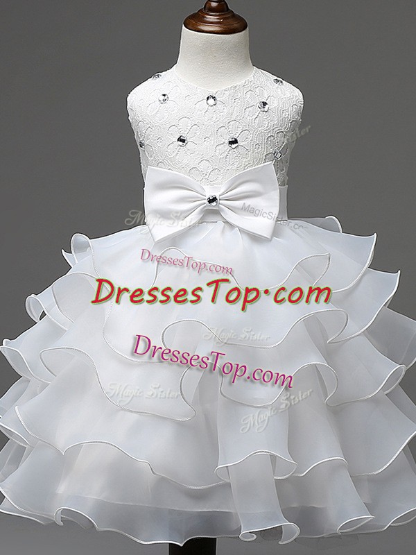 Ball Gowns Child Pageant Dress White Scoop Organza Sleeveless Knee Length Zipper
