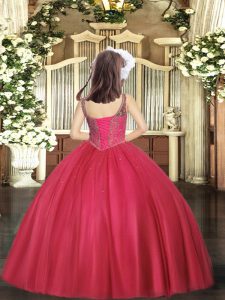 Ball Gowns Custom Made Pageant Dress Red Straps Tulle Sleeveless Floor Length Zipper