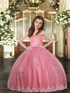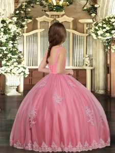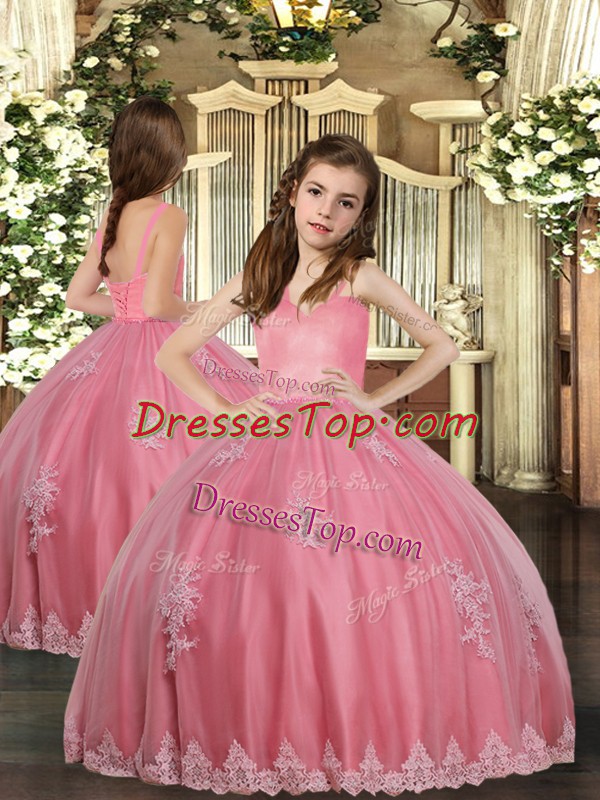 Ball Gowns Girls Pageant Dresses Watermelon Red Straps Tulle Sleeveless Floor Length Lace Up