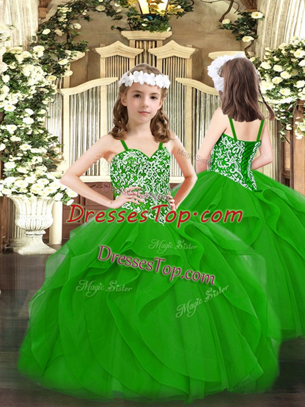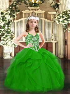 Ball Gowns Kids Formal Wear Green Straps Tulle Sleeveless Floor Length Lace Up