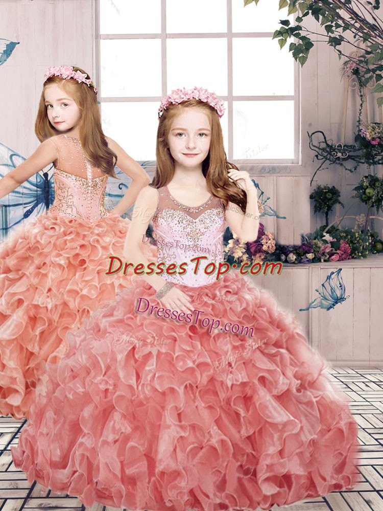 Ball Gowns Kids Formal Wear Red Scoop Organza Sleeveless Floor Length Zipper