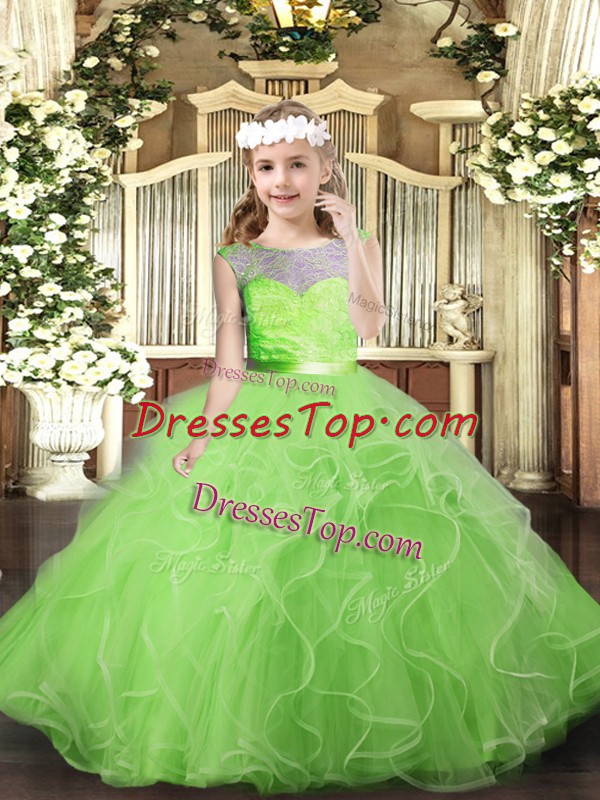 Ball Gowns Lace and Ruffles Little Girls Pageant Dress Backless Tulle Sleeveless Floor Length