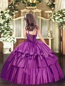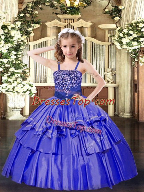 Ball Gowns Little Girls Pageant Gowns Blue Straps Organza Sleeveless Floor Length Lace Up