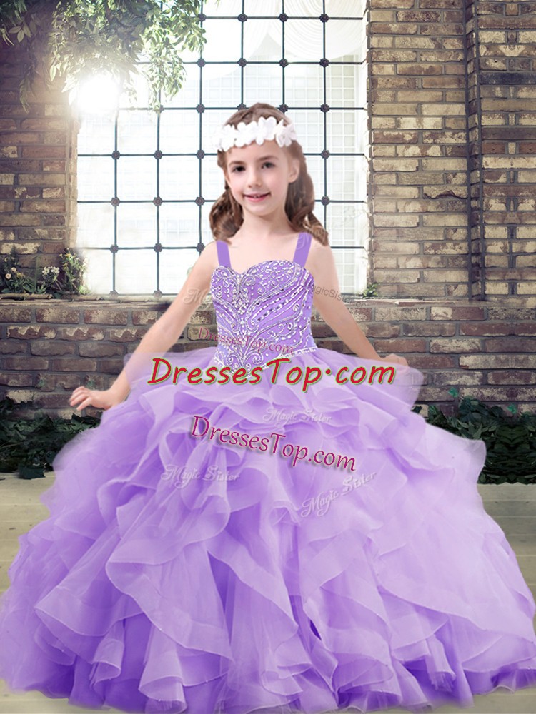 Ball Gowns Little Girls Pageant Gowns Lavender Straps Organza Sleeveless Floor Length Lace Up