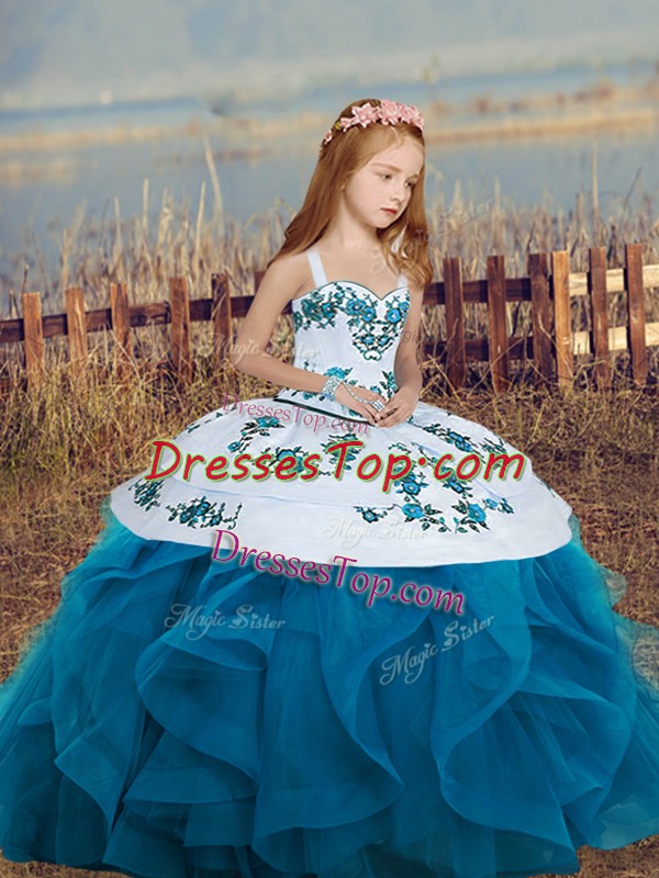 Ball Gowns Pageant Dress Blue Straps Sleeveless Floor Length Lace Up