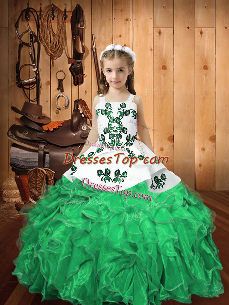 Ball Gowns Pageant Dress Turquoise Straps Organza Sleeveless Floor Length Lace Up