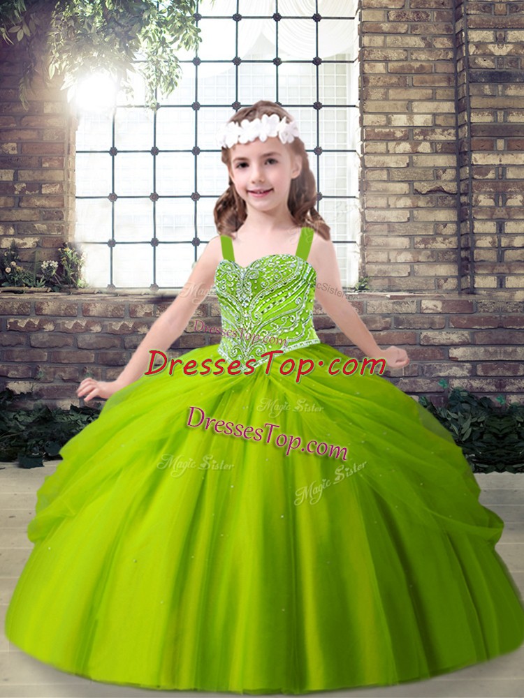 Ball Gowns Pageant Gowns Green Straps Tulle Sleeveless Floor Length Lace Up