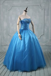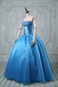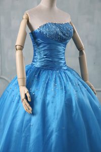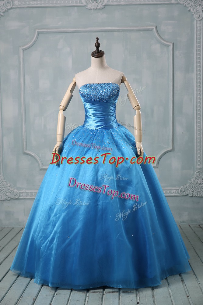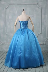 Ball Gowns Quince Ball Gowns Baby Blue Strapless Organza Sleeveless Floor Length Lace Up