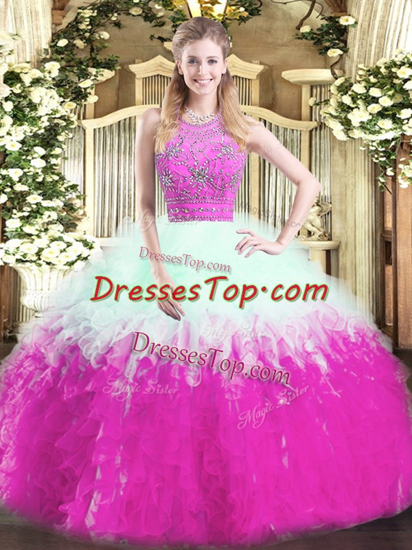 Ball Gowns Quince Ball Gowns Multi-color Halter Top Tulle Sleeveless Floor Length Zipper