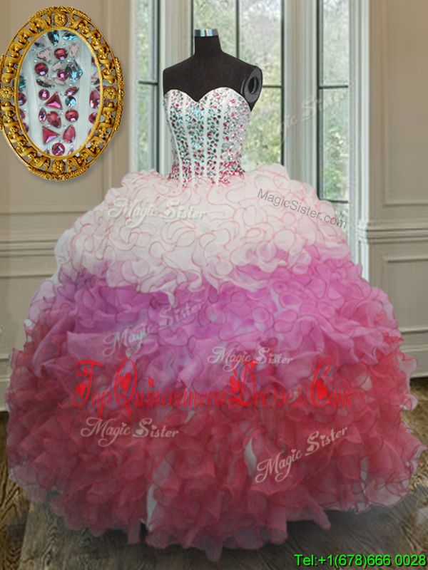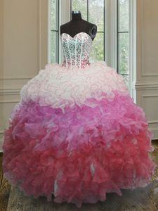 Ball Gowns Quince Ball Gowns Multi-color Sweetheart Organza Sleeveless Floor Length Lace Up
