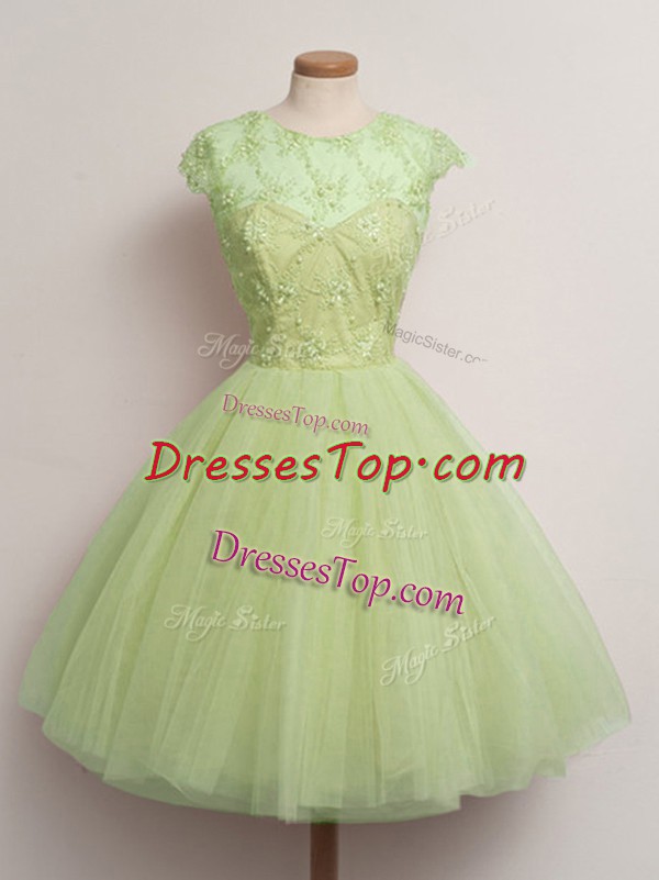 Ball Gowns Quinceanera Court of Honor Dress Yellow Green Scoop Tulle Cap Sleeves Knee Length Lace Up