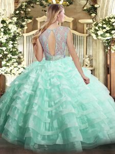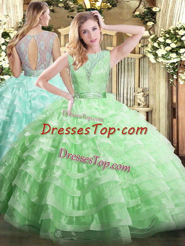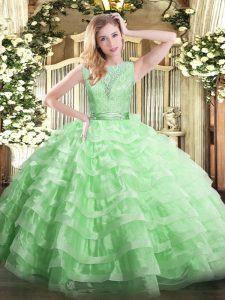 Ball Gowns Quinceanera Dress Apple Green Scoop Organza Sleeveless Floor Length Backless