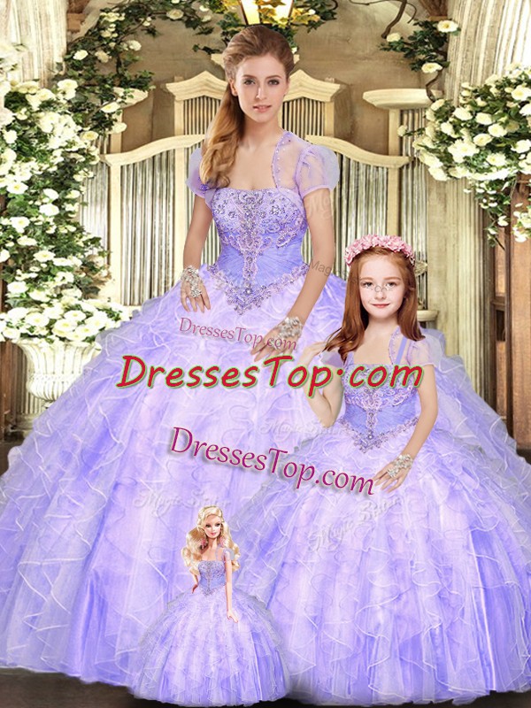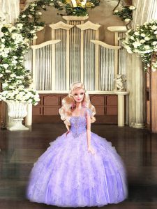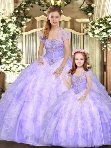 Ball Gowns Quinceanera Dress Lavender Strapless Tulle Sleeveless Floor Length Lace Up