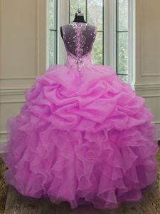 Ball Gowns Quinceanera Dress Lilac Straps Organza Sleeveless Floor Length Zipper