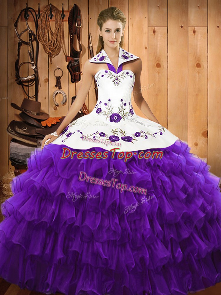 Ball Gowns Quinceanera Dress Purple Halter Top Organza Sleeveless Floor Length Lace Up