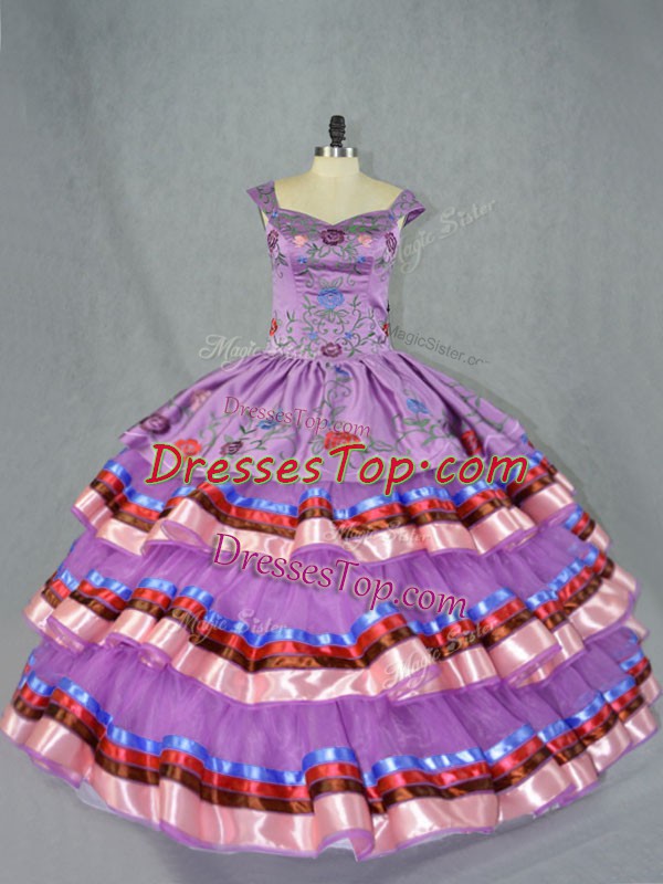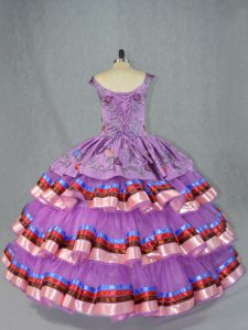 Ball Gowns Quinceanera Dress Purple Straps Organza Sleeveless Floor Length Lace Up