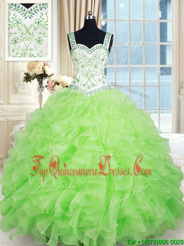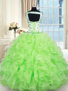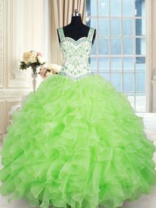 Ball Gowns Quinceanera Dress Purple Straps Organza Sleeveless Floor Length Zipper