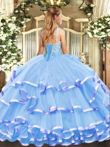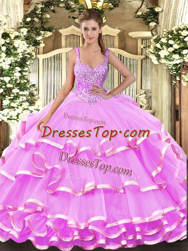 Ball Gowns Quinceanera Dresses Lilac Straps Organza Sleeveless Floor Length Lace Up