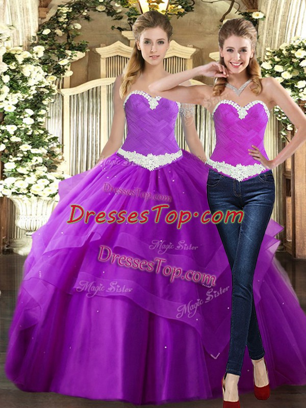 Ball Gowns Quinceanera Dresses Purple Sweetheart Tulle Sleeveless Floor Length Lace Up