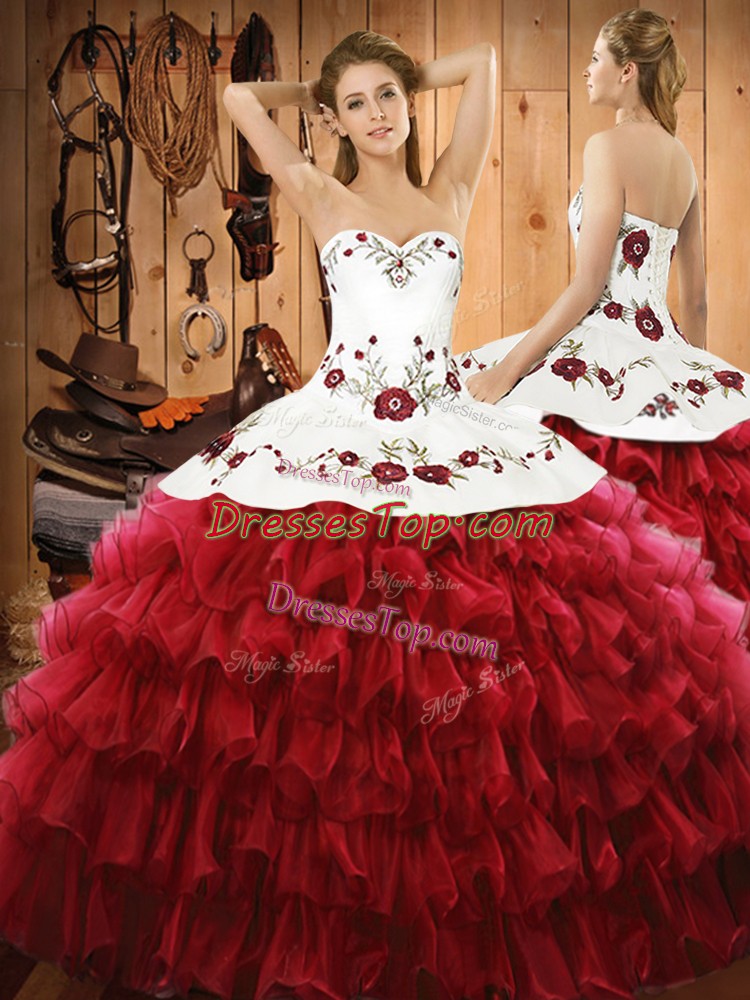Ball Gowns Quinceanera Dresses Wine Red Sweetheart Organza Sleeveless Floor Length Lace Up