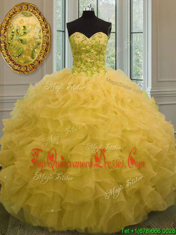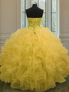 Ball Gowns Quinceanera Gown Gold Sweetheart Organza Sleeveless Floor Length Lace Up