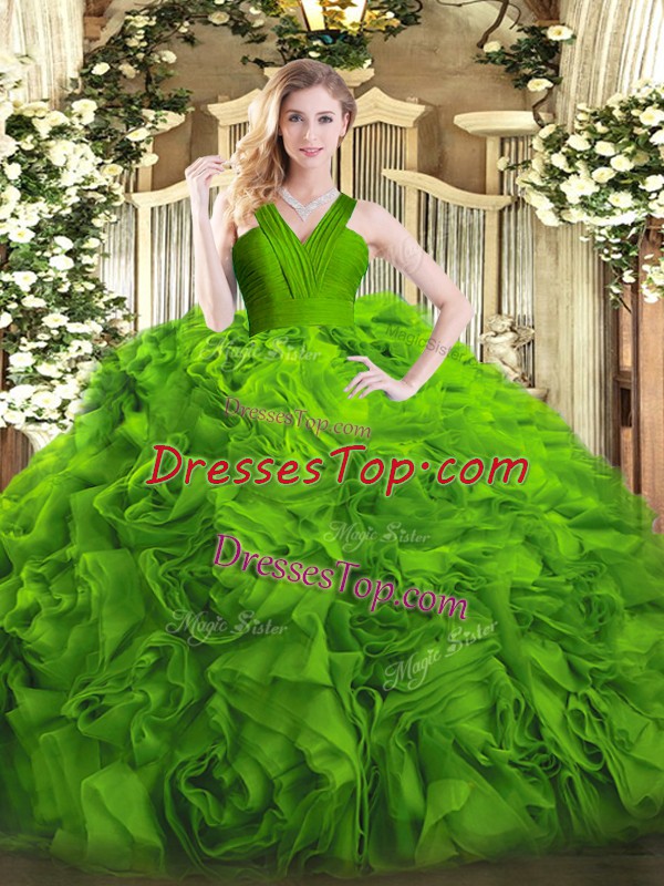 Ball Gowns Ruffles Quinceanera Dress Zipper Fabric With Rolling Flowers Sleeveless Floor Length
