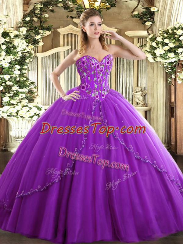 Ball Gowns Sleeveless Eggplant Purple Quinceanera Gown Brush Train Lace Up