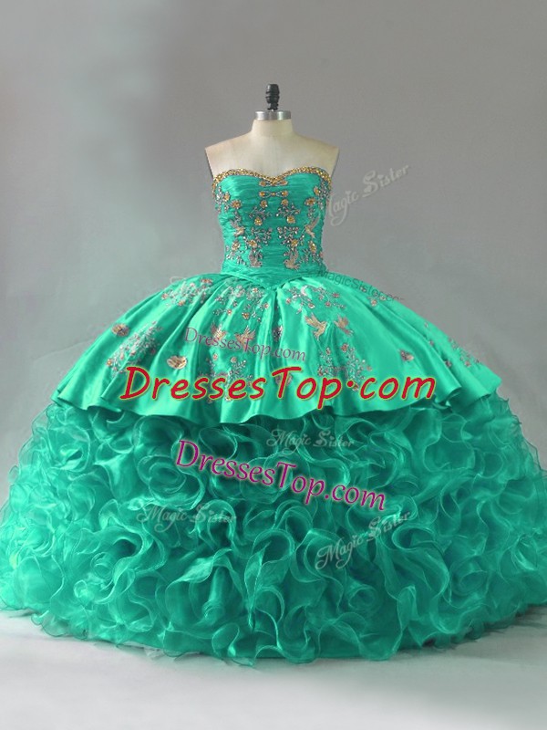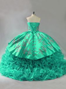 Ball Gowns Sleeveless Green 15th Birthday Dress Court Train Lace Up