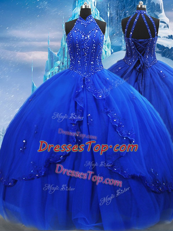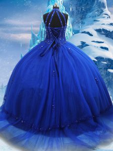 Ball Gowns Sleeveless Royal Blue Vestidos de Quinceanera Brush Train Lace Up