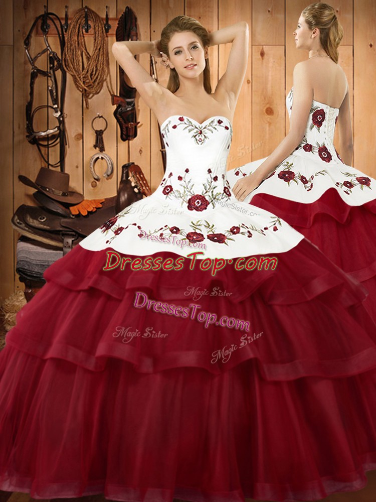 Ball Gowns Sleeveless Wine Red Quinceanera Dresses Sweep Train Lace Up