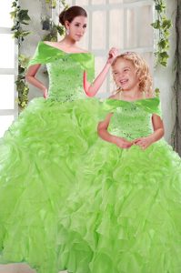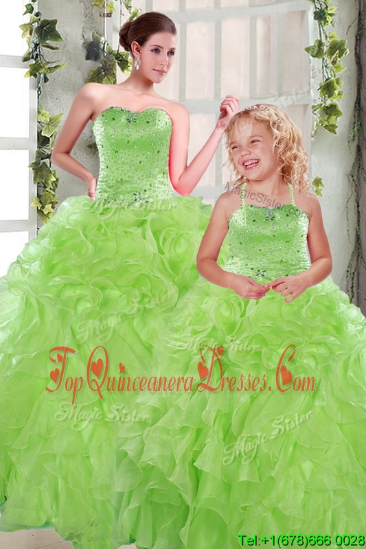 Ball Gowns Strapless Sleeveless Organza Floor Length Lace Up Beading and Ruffles Quinceanera Gown