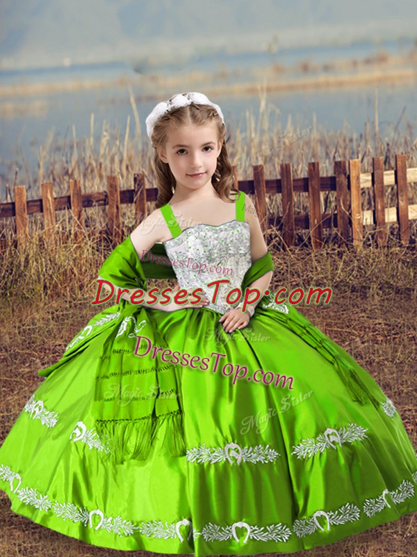 Ball Gowns Straps Sleeveless Satin Floor Length Lace Up Beading and Embroidery Little Girl Pageant Gowns