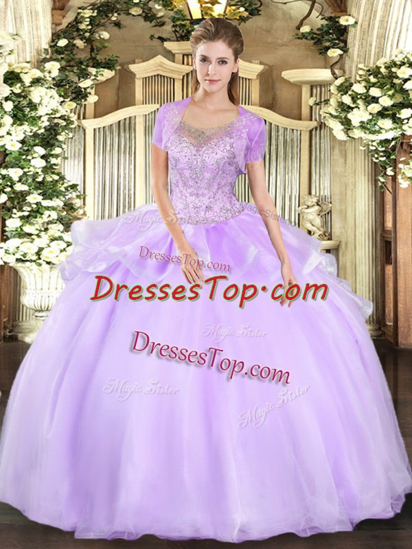 Ball Gowns Sweet 16 Dress Lavender Scoop Tulle Sleeveless Floor Length Clasp Handle