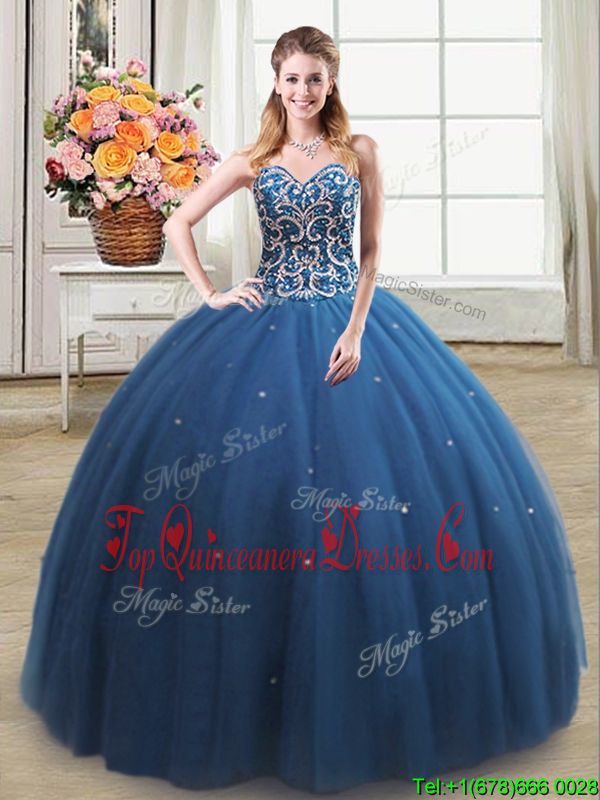 Ball Gowns Sweet 16 Dress Teal Sweetheart Tulle Sleeveless Floor Length Lace Up