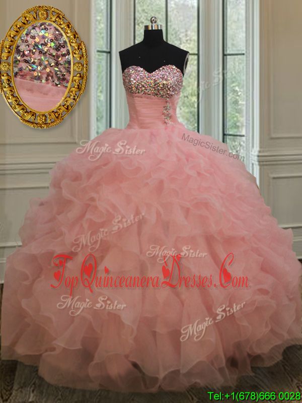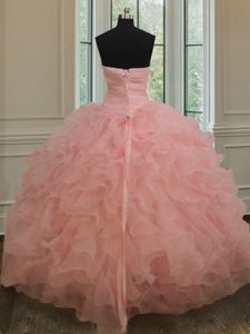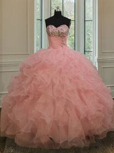 Ball Gowns Sweet 16 Dress Watermelon Red Sweetheart Organza Sleeveless Floor Length Lace Up
