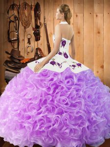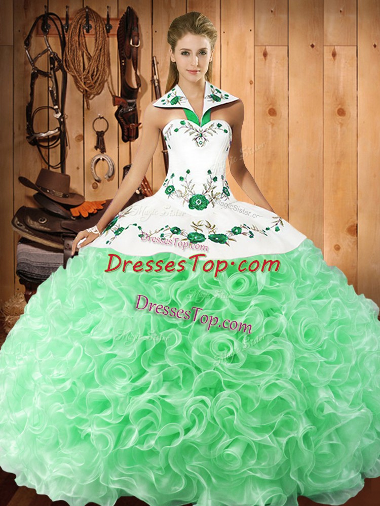 Ball Gowns Sweet 16 Quinceanera Dress Apple Green Halter Top Fabric With Rolling Flowers Sleeveless Floor Length Lace Up