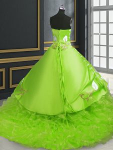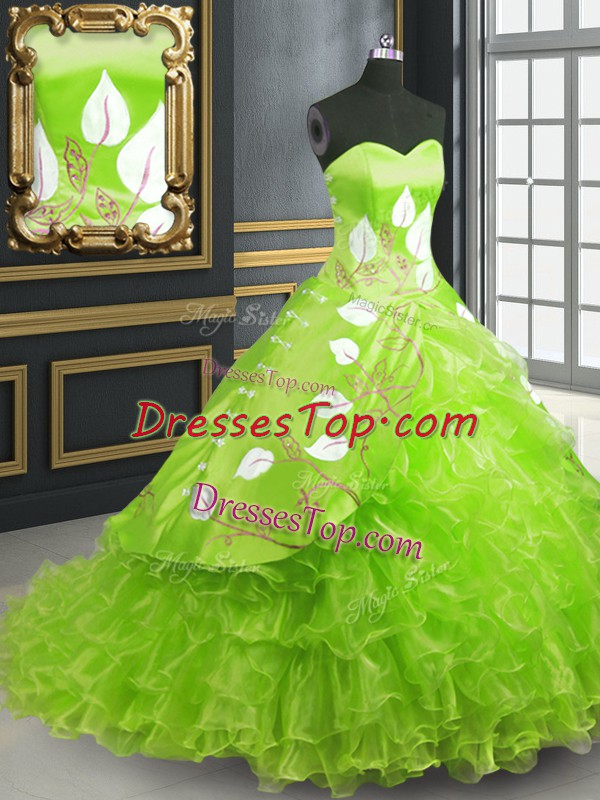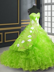 Ball Gowns Sweetheart Sleeveless Organza Brush Train Lace Up Embroidery Quince Ball Gowns