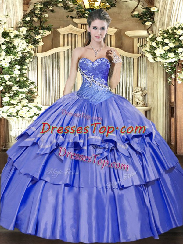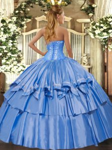 Ball Gowns Vestidos de Quinceanera Blue Sweetheart Organza and Taffeta Sleeveless Floor Length Lace Up