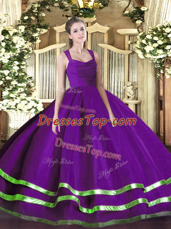 Ball Gowns Vestidos de Quinceanera Purple Straps Organza Sleeveless Floor Length Zipper
