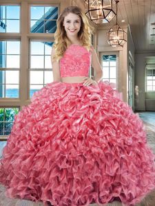 Bateau Sleeveless Organza Ball Gown Prom Dress Lace and Ruffles Lace Up