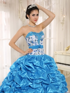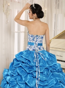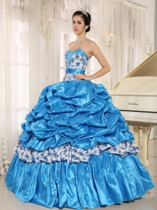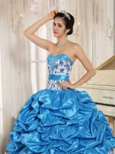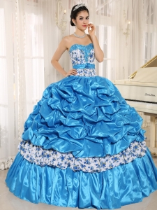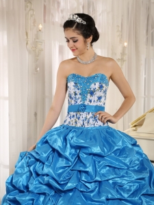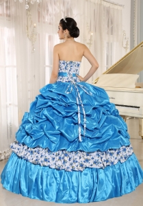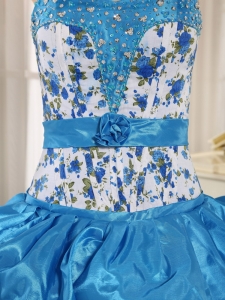 Beaded and Pick-ups Aqua Blue Quinceanera Dress with Print