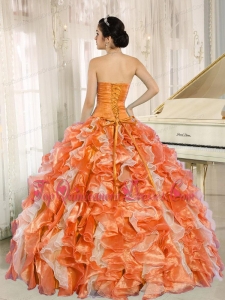 Beaded and Ruffles Custom Made For 2013 Orange Sweetheart Elegant Quinceanera Dresses